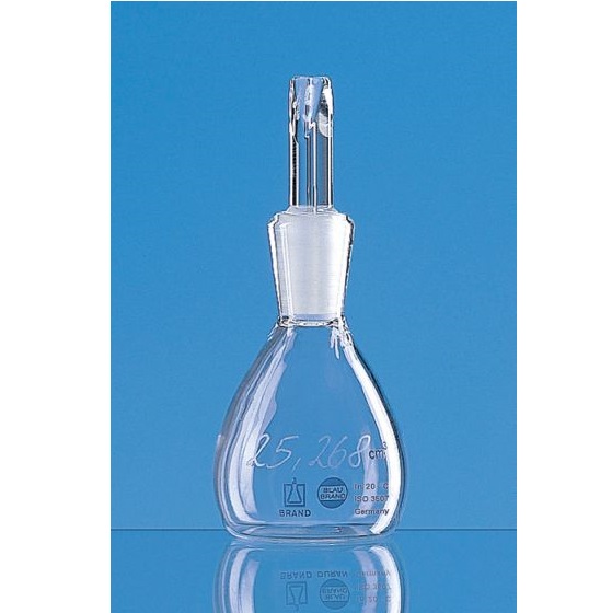 硼硅酸盐玻璃 3.3。DIN ISO 3507, 类型Gay-Lussac. 校准为包含 (TC, In)。 包括。 个人证书。 带毛细管的塞子 NS 10/19。 塞子顶部磨光和抛光。 以 cm³ 为单位的体积精确到小数点后 3 位。