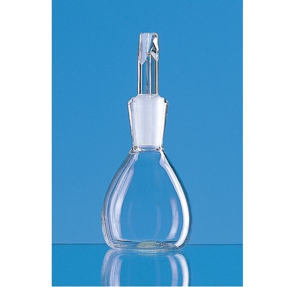 硼硅酸盐玻璃 3.3。 DIN ISO 3507, 类型 Gay-Lussac. 带毛细管的塞子 NS 10/19。 塞子顶部磨光和抛光。 标称容量印在底部。