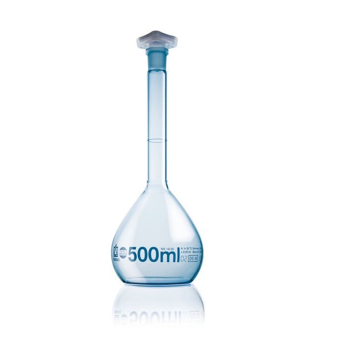 所有BLAUBRAND®容量瓶均随原厂包装附有批次号和批次校准证书。 根据您的要求,也可提供个体校准证书或DAkkS校准证书。