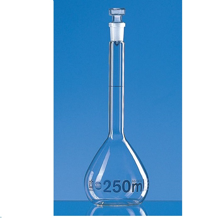 所有 BLAUBRAND® 容量瓶均在原包装中附有批号和批证书。 还可根据要求提供单独的证书或 DAkkS 校准证书。